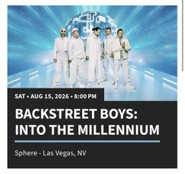 4x BACKSTREET BOYS: INTO THE MILLENNIUM Sphere - Las Vegas, NV Concert Floor Tickets SAT • AUG 15, 2026 • 8:00 PM General Admission$1,400Poway, CA