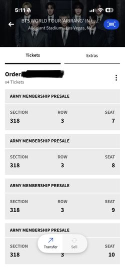 4x BTS WORLD TOUR 'ARIRANG' IN LAS VEGAS Allegiant Stadium - SAT • MAY 23, 2026 • 8:00 PM$1,000Poway, CA