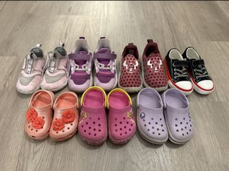 7 Pairs Of Girls Shoes Crocs Adidas Nike Sizes 6 8 9 9.5 Kids Youth Sneakers Tennis Shoes$35Poway, CA