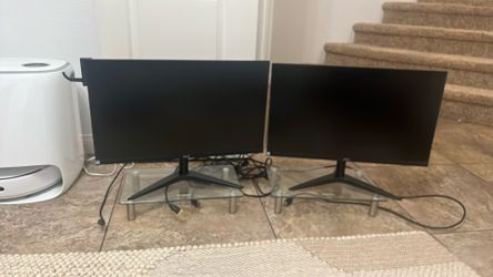 2 24inch Monitors AOC And 2 Monitor Glass Stand Risers $200Palmdale, CA