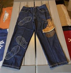 Raw Blue Mens Jeans 40x33 Baggy Relaxed Detailed 3D Suede Boot Stitch Embellish$120Santa Ana, CA