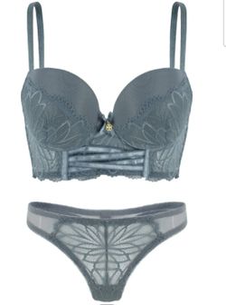 NWT DAISY FUENTES Lace Push Up Bra 36B Matching Thong Set L Dusty Teal Blue$20Fillmore, CA