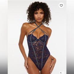 NWT SAVAGE X FENTY Framed in Denim Lace Halter Teddy Cutout Cameo Lingerie L$65Fillmore, CA