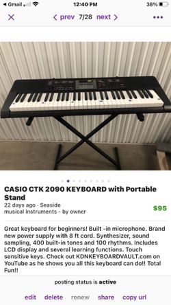 Casio Keyboard And Folding Stand+8’ Cord (new)$125Seaside, CA