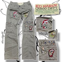 SoldVintage Y2K Ed Hardy Cargo Dept Twill Pants$115Rowland Heights, CA