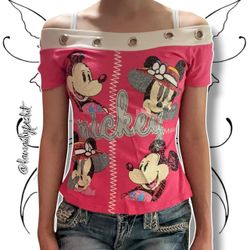 Vintage Y2K Mickey & Minnie Off The Shoulder Baby Tee Top From Japan (Hot Pink/Multicolor)$80Rowland Heights, CA
