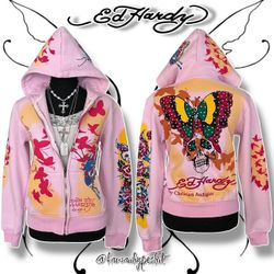 Vintage Y2K Ed Hardy Zip-Up Hoodie (Light Pink/Multicolor) $135Rowland Heights, CA