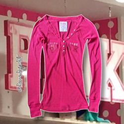 Vintage Y2K Victoria's Secret PINK Long Sleeve Thermal Henley Top From 2007 (Hot Pink)$70Rowland Heights, CA