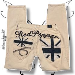 Vintage Y2K Red Pepper Japanese Denim Union Jack Embroidered Jeans (Khaki Beige Tan/Multicolor)$120Rowland Heights, CA