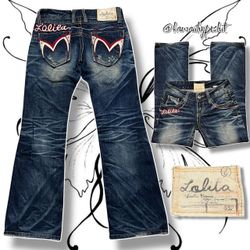 Vintage Y2K Ultra Low Rise Lolita Bootcut Jeans From Japan (Blue/Red/White) $125Rowland Heights, CA
