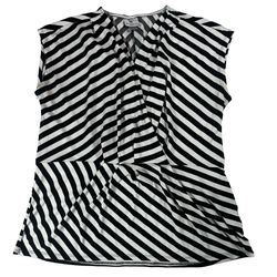 Worthington Black White Striped Blouse Stretch V Neck Pleated Top Size XL $5Long Beach, CA