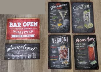 Lot Of 6 Retro Bar Decor Signs - Tin Metal Man Cave Beer And Liquor Signs$50San Diego, CA
