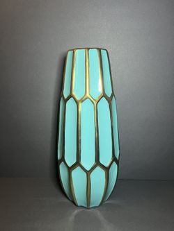 Apropos Home Collection Art Deco Turquoise & Gold Faceted Large Ceramic Vase 14"$40Warren, NJ