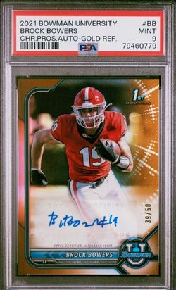 2021 BOWMAN UNIVERSITY CHROME PROSPECT AUTOGRAPHS #BB BROCK BOWERS https://offerup.com/redirect/?o=Q0hSLlBST1MuQVVUTw==-GOLD REFRACTOR PSA 9$499Queen Creek, AZ