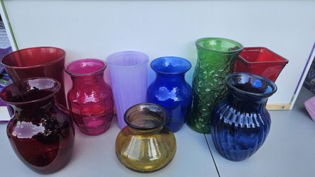 Collection of 9 glass vases - Pink, red, blue, purple, green and brown$20Cincinnati, OH