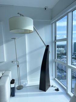 Cantilever solid wood base contemporary floor lamp 14 inch wide shade LED$380Miami Beach, FL