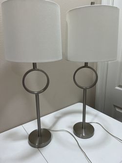 Set of 2 Modern Brushed Nickel Table Lamps with White Shades$25Victorville, CA