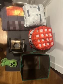 Creeper Plushy, Redstone Lamp, Tnt Block, 2 Gast Pillows, Twin Size Mattress Bed Sheet,$100Wheaton, IL