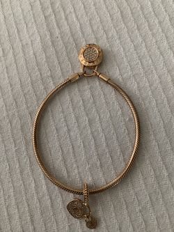 Rose gold-plated Pandora snake chain bracelet with padlock clasp and heart charm.$200Inglewood, CA