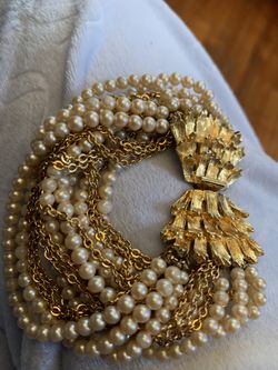Vintage multi-strand pearl bracelet with a gold-tone floral clasp.$80Inglewood, CA