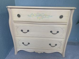 cream three-drawer chest with hand-painted floral accents.$80Windsor Hills, CA