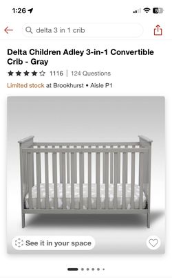 Delta 3-in1 Gray Convertible Crib$50Garden Grove, CA
