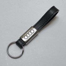 AUDI Rings Leather Loop Key Chain Fob Logo Black Keychain Embossed Pewter Color$20Redondo Beach, CA