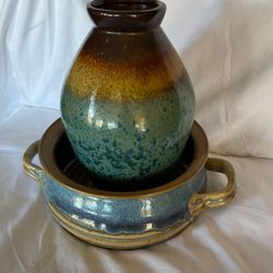 Two pieces of pottery one I shoot blue and brown1V shape blue and brown not right now one$100Waterloo, SC