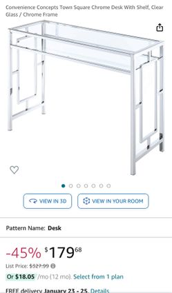 Entry Table/Desk - Clear Glass & Chrome Frame $150Covington, WA