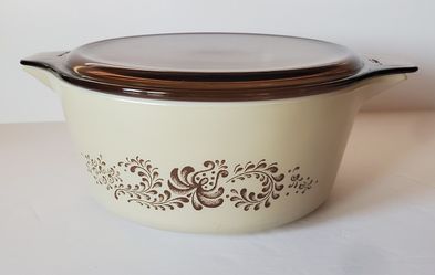 PYREX Old Orchard 2 1/2 QT Round Casserole Dish # 475B w/ Brown Lid$12Tucson, AZ