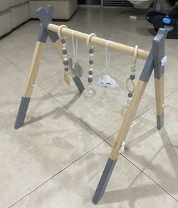 Wooden Baby Play Gym Foldable Frame Activity Gym Hanging Bar with 5 Gym Baby Toys $35Miami, FL