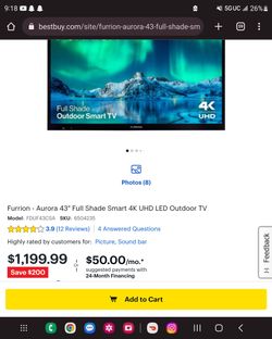 Furrion Aurora 55 Inch Full Shade Out Door 4k Tv$1,300Paramount, CA