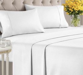 New Queen Size MooMee Gingham Sheet Set 100% Washed Cotton Linen Like Textured Breathable Soft$40Queen Creek, AZ