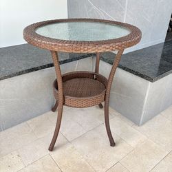 Nice Outdoor Bistro Side Patio Table with Glass Top and Storage Shelf, 24”Wx28”H$27Queen Creek, AZ