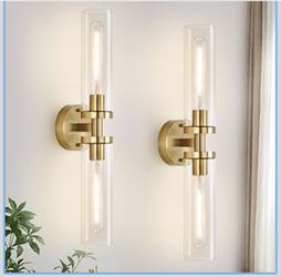 Wall Sconces Set of Two, Hardwired Brushed Gold Accent Bathroom Lighting with Clear Glass$45Queen Creek, AZ