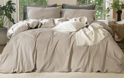 New 100% Washed Cotton Super King Plus Size Almond Milk Grey Duvet Cover Set$60Queen Creek, AZ