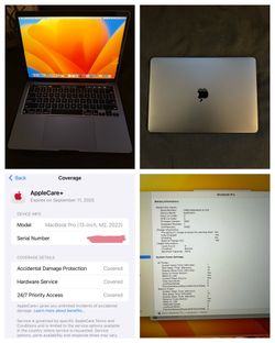 M2 13 Inch MacBook Pro AppleCare+ Included 1 Tb Flash 16 Gb Ram$1,200Branford, CT