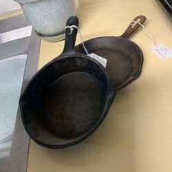 QTY — 2 CAST IRON SKILLETS - BOTH ARE 6 5/8” — $15 FOR BOTH — NOT EACH !!$17Salem, OR