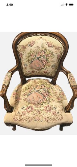Antique Solid Wood French Style Louis XV Armchairs Cross Stitching of Courting Lady$250Las Vegas, NV