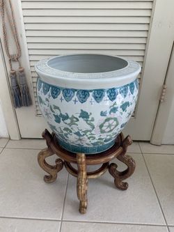 Reduced big vase With Wood Base$110Indn Riv Shrs, FL