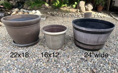 3 XLG planter Pots Wine Barrel Buckets Patio Garden $50Lodi, CA