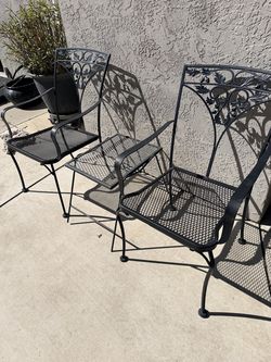 4 wrought iron parlor chairs patio garden stackable black gray$60Lodi, CA
