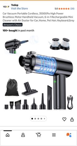 Car Vacuum Portable Cordless, 35000Pa High Power Brushless Motor Handheld Vacuum, 6-in-1 Rechargeable Mini Cleaner with Air Duster for Car, Home, Pet $30El Monte, CA