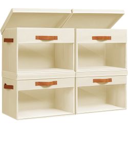 Homsorout Large Storage Bins with Lids - 4 Pack Foldable Decorative Organizers with Clear Windows & Handles, Cube Storage Organizers for Clothes, Blan$20El Monte, CA