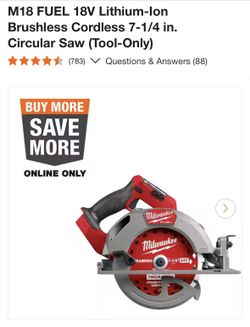 SoldMilwaukee M18 Brushless Cordless 7-1/4 in Circular Saw$150Hayward, CA