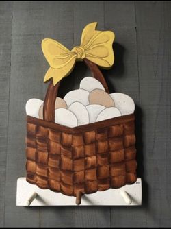 Wooden hand painted basket eggs with three pegs for hanging keys, hats, scarves or jewelry$20Issaquah, WA