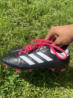 Adidas Kids Soccer Cleats Black with White Stripes Pink Trim and Laces Size 5$35Clovis, CA