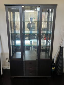 4 Tier Display Storage Cabinet With Mirror, Drawers & Tempered Glass And Drawers Dark Brown Organization $270Chino Hills, CA