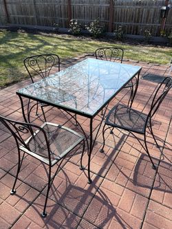 Vintage Salterini 5p Black Wrought Iron Patio Dining Set Rectangular Glass Top Table and 4 Chairs.$300Yonkers, NY
