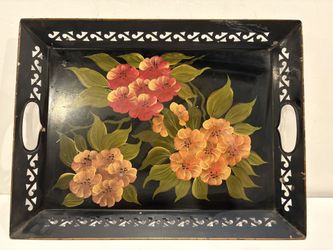 Vintage Hand-Painted Metal Toleware Serving Vanity Tray with Floral Design. $40Yonkers, NY
